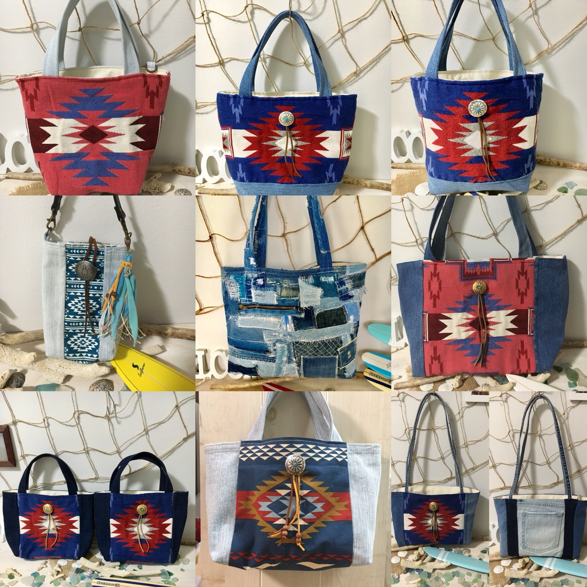 オーダーバッグ作成承ります デニム トート リメイク パッチワーク ダメージ オルテガ 西海岸