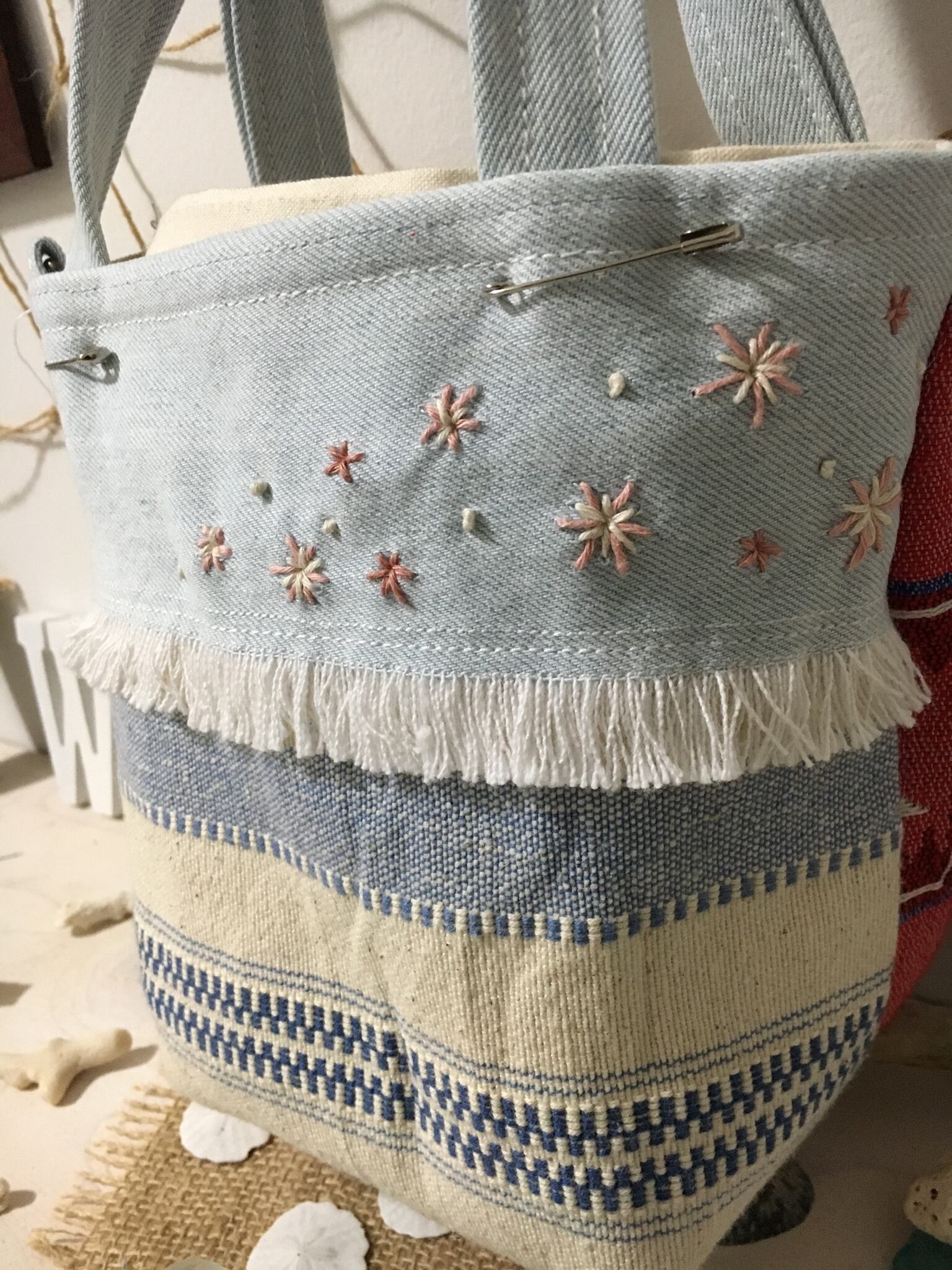 ヘンプでお花をモチーフにしたステッチを施したオーダー作品となります