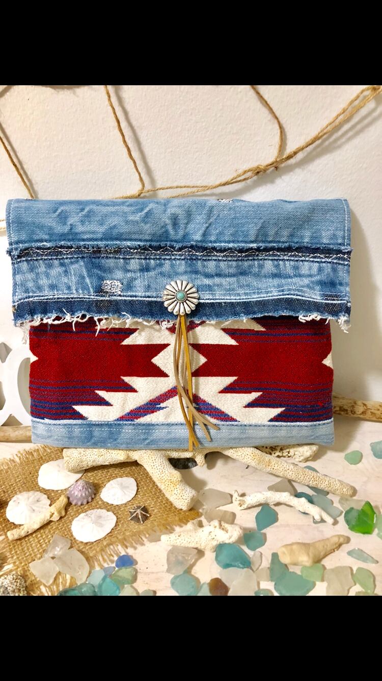 オルテガ ダメージ デニム コンチョ シルバー クラッチ バッグ 西海岸