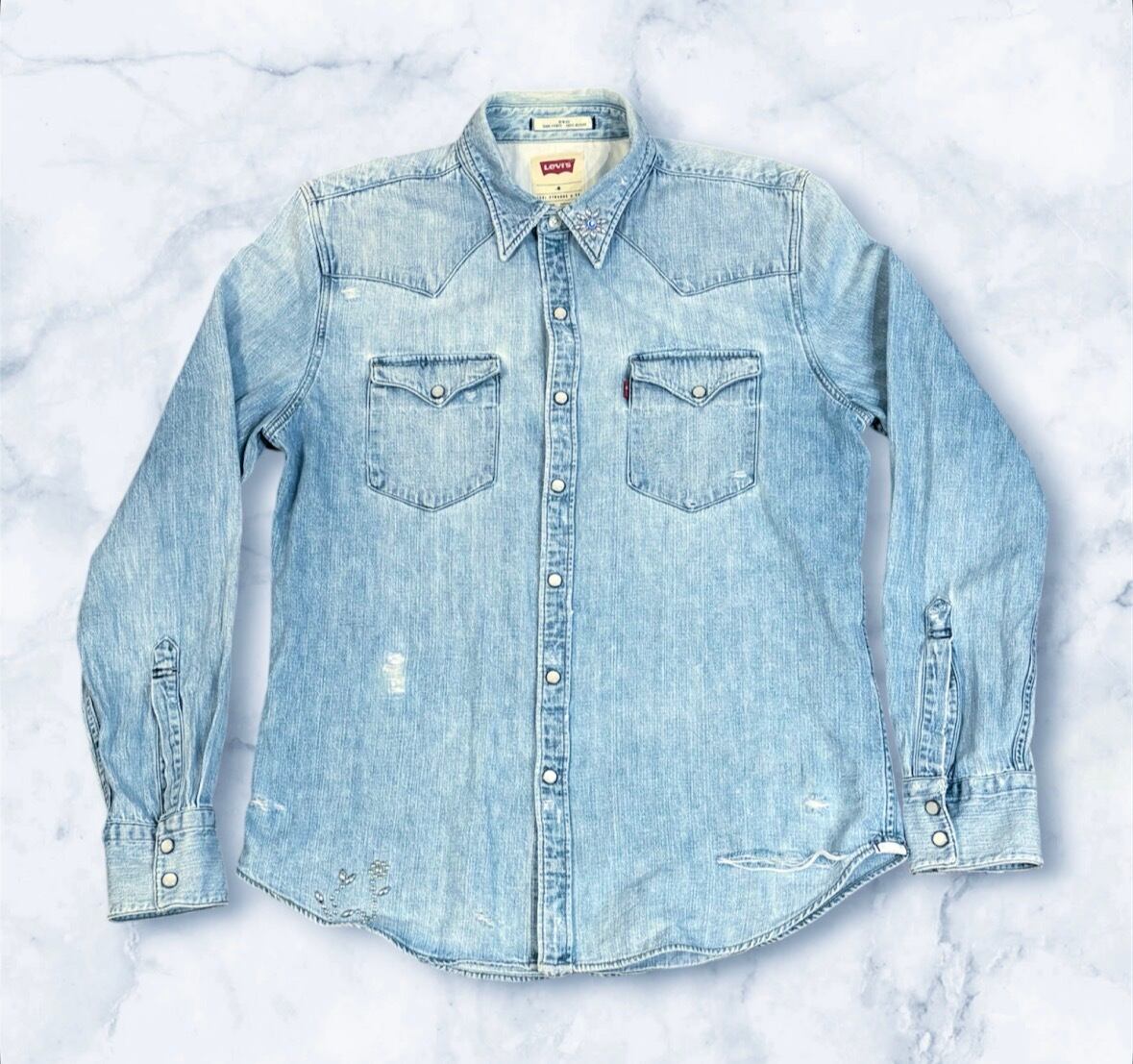 スタッズ カスタム リーバイス ダメージデニムシャツ