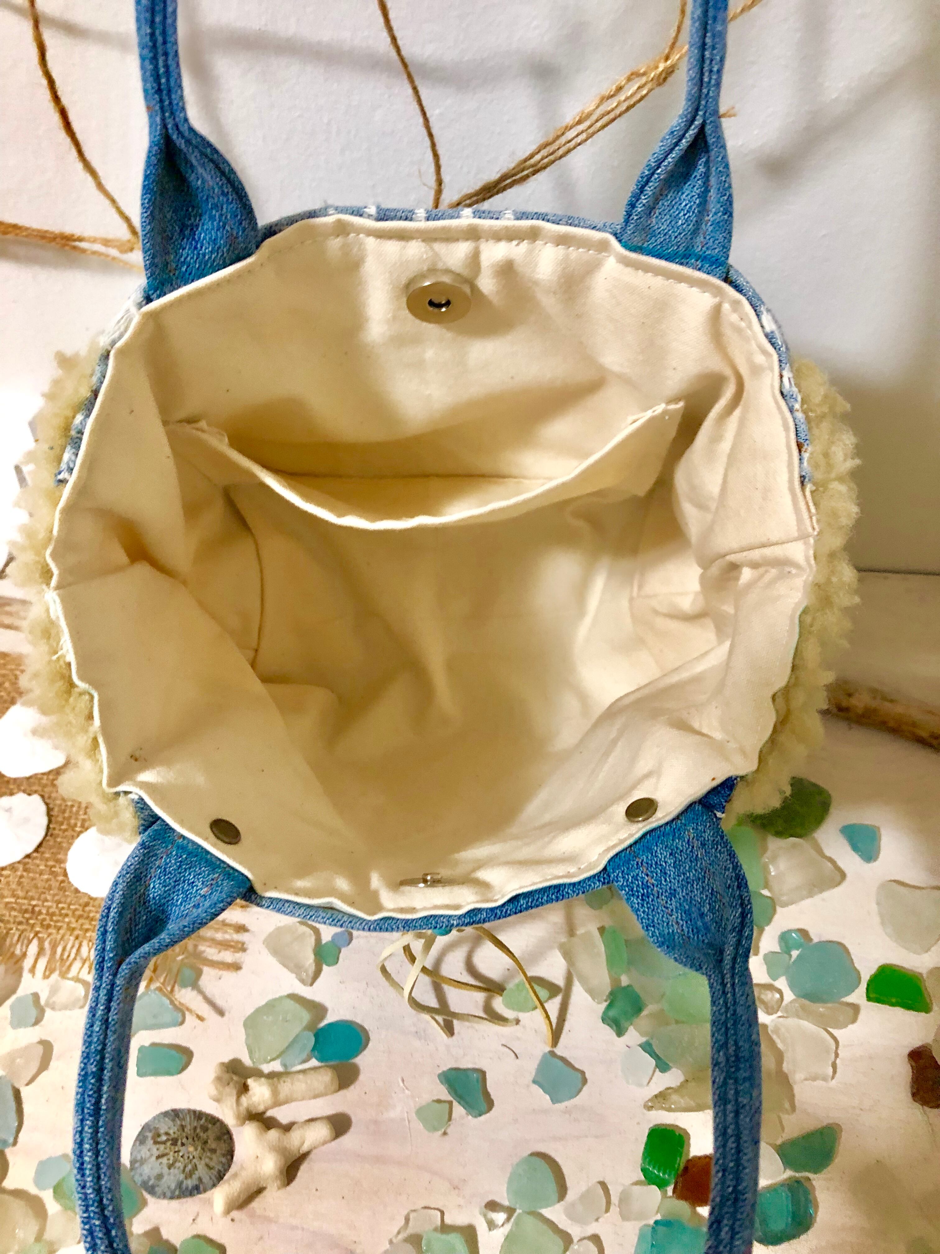 コンチョ デニム ボア ハンドバック リメイク ハンドメイド