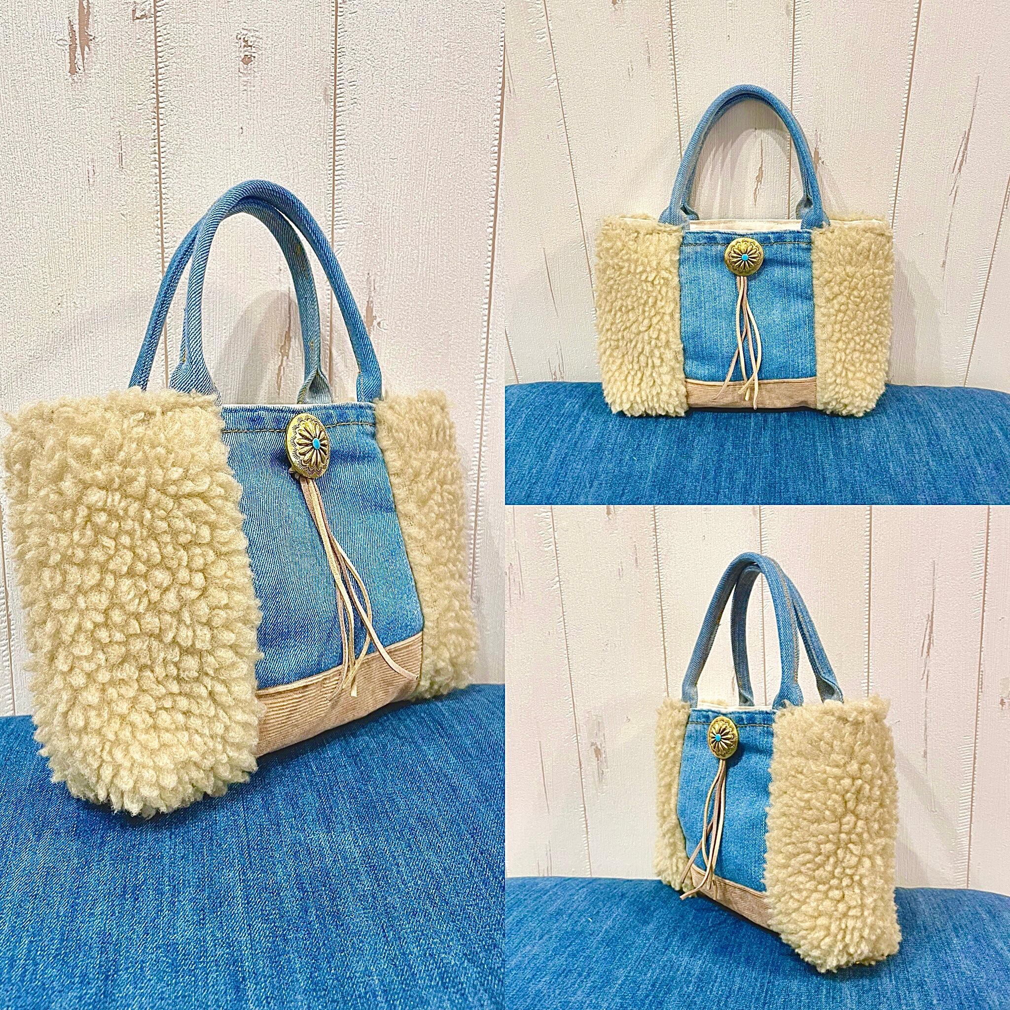 リメイク デニムバッグ ミニトート コンチョ ハンドバッグ ハンドメイド